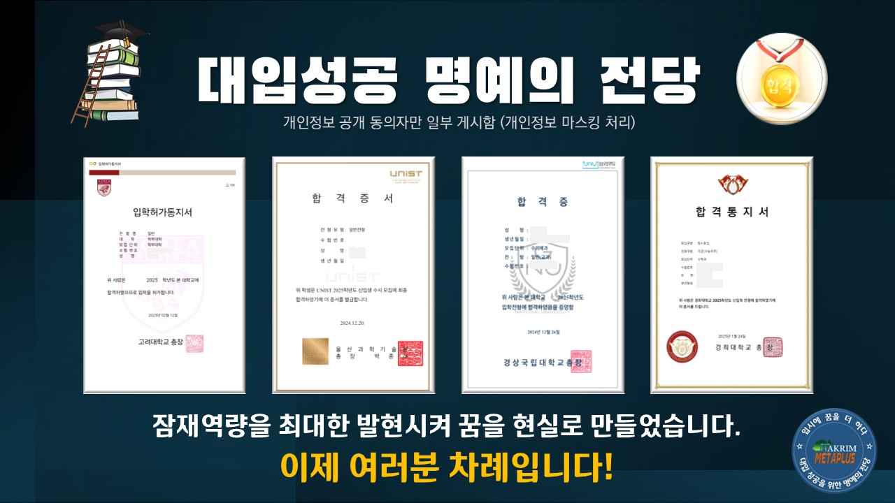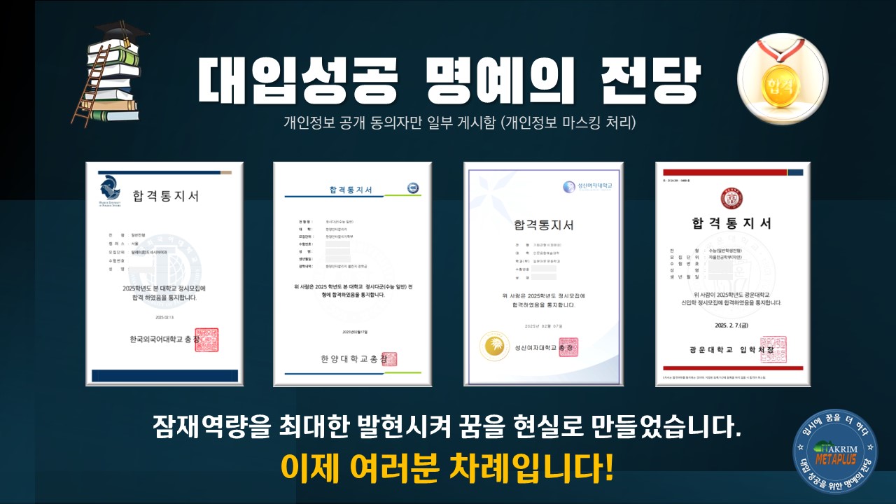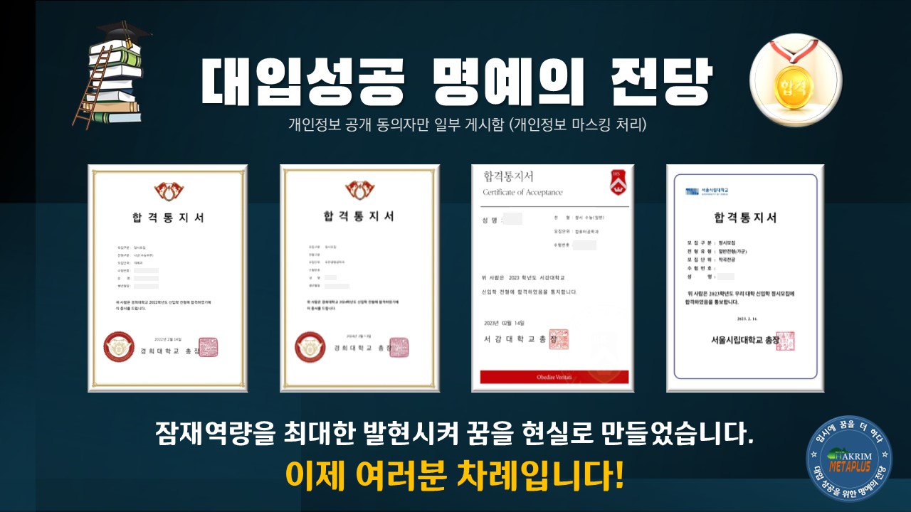 공지사항 HOME > 공지사항 > 공지사항 [대입실적] 합격을 축하합니다! 작성자 : 학림메타플러스학원() 작성일 : 2025-10-29 조회수 : 14 파일첨부 : 이전글 다음글 2026수능 수험생 필수 유의사항 리스트