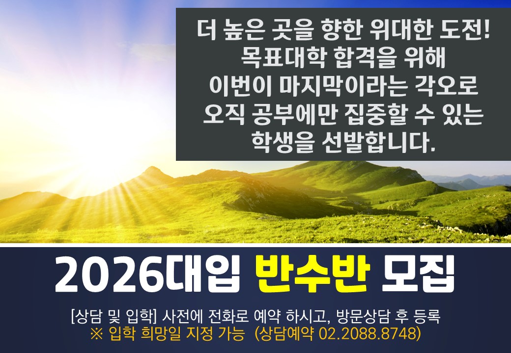 공지사항 HOME > 공지사항 > 공지사항 반수반 모집 작성자 : 학림메타플러스학원() 작성일 : 2025-04-24 조회수 : 663 파일첨부 : 이전글 9월모평 비학원생 응시신청 [마감] 다음글 6월모평 시험일 변경안내 리스트